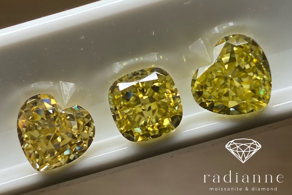 一言にイエローモアッサナイトと言っても、その範疇の色味は様々。