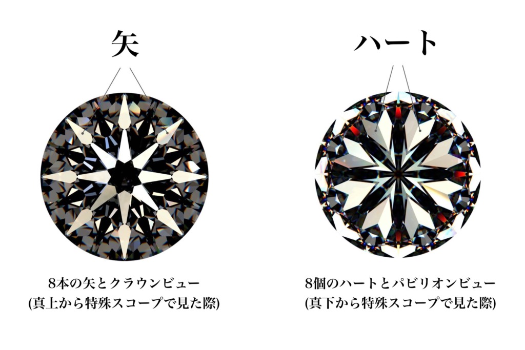 ラディアンヌがメインの石で使用するラウンドブリリアントカットのルースは、大きさを問わず、特殊スコープで見るとハートアンドアロー(ハートアンドキューピッド)を厳選して使用しております。